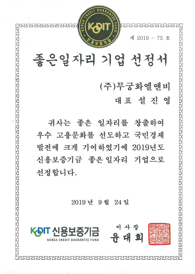¹«±ÃÈLNB°¡ 2019³â ½Å¿ëº¸Áõ±â±Ý ÁÁÀºÀÏÀÚ¸® ±â¾÷¿¡ ¼±Á¤µÇ¾ú½À´Ï´Ù.