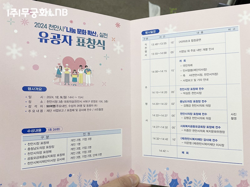 ³ª´® ¹®È È®»ê ½Çõ À¯°øÀÚ Ç¥Ã¢½ÄÀÌ ÁøÇàµÇ¾ú½À´Ï´Ù.