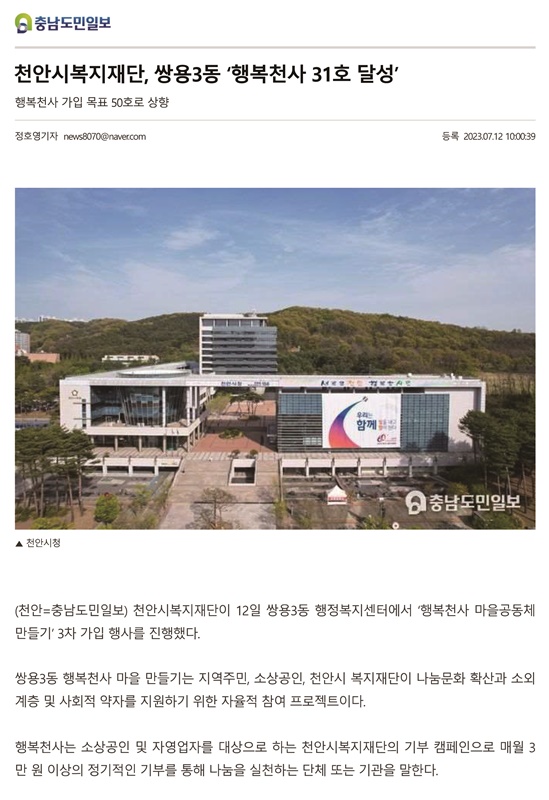 Ãæ³²µµ¹ÎÀϺ¸ ¹«±ÃÈLNB, õ¾È½Ãº¹ÁöÀç´Ü, ½Ö¿ë3µ¿ 'Çູõ»ç 31È£ ´Þ¼º'